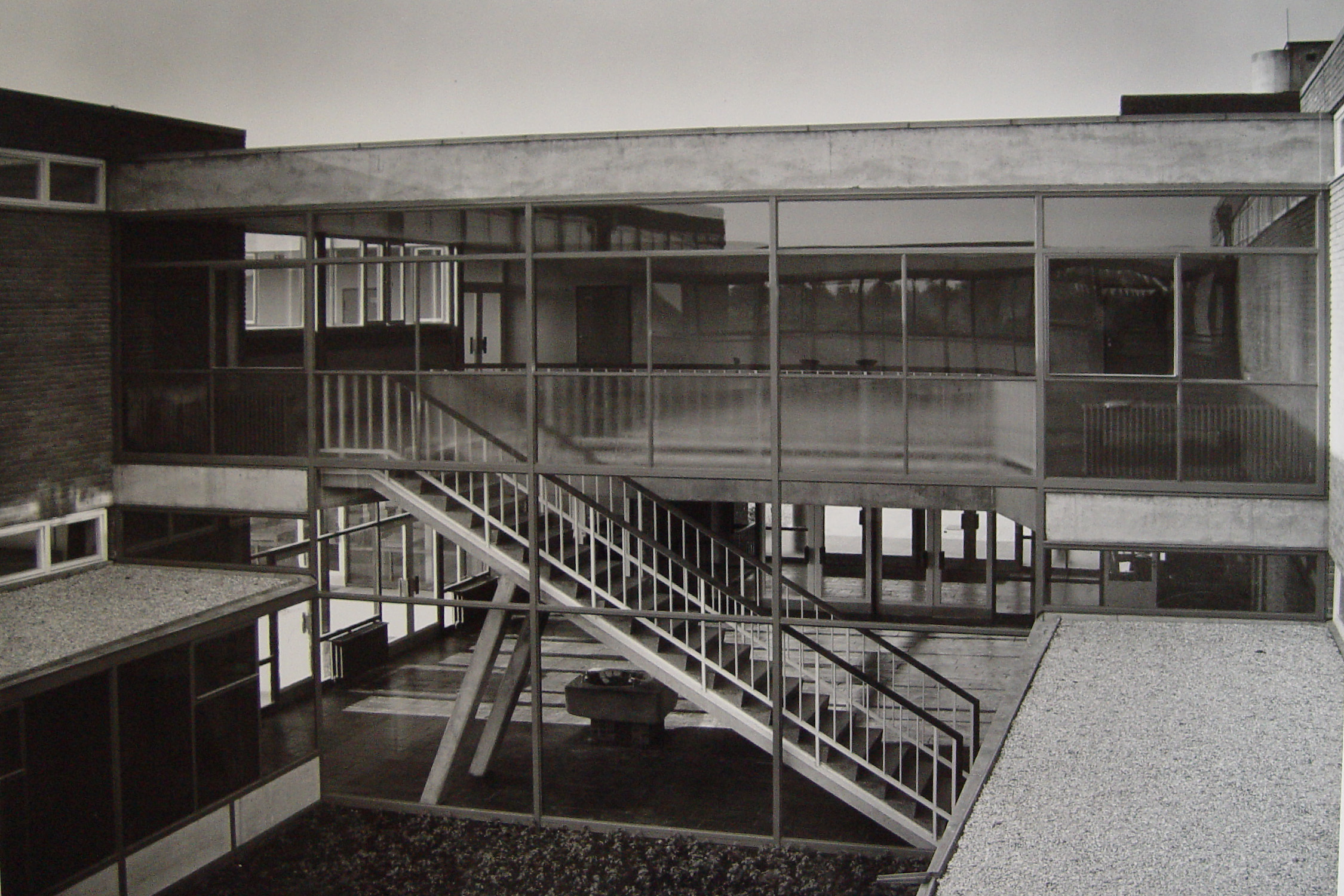Wettbewerb 1. Preis. 20-klassige Schule mit Sporthalle und Aula. Die Aula konnte wegen finanzieller Schwierigkeiten bis heute nicht realisiert werden.