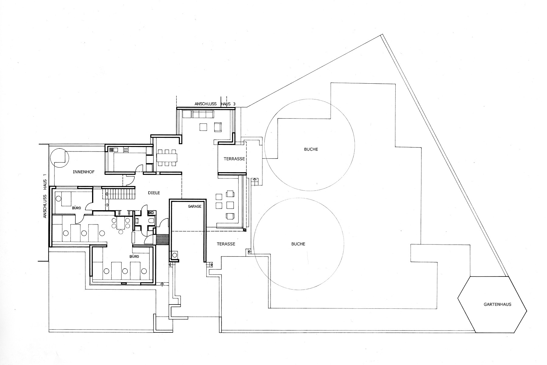 Wohnhaus und Büro von Hans Bandel (Weiterlesen) Heute: 2013 sind Haus und Bäume durch den neuen Besitzer abgerissen. Nur das Gartenhaus erinnert an die historische Einbindung des alten Grundstückes.