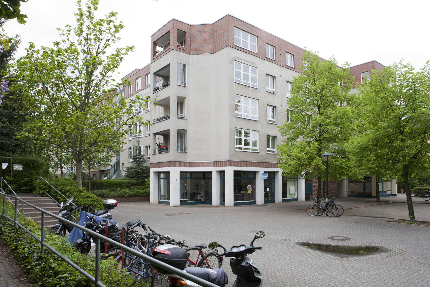 Die städtebauliche Einordnung der Neubebauung erfolgt durch großzügige Raumbildung, bezogen auf die unmittelbare Nachbarbebauung mit übergreifender Grünplanung, gemeinsame Frei- und Spielflächen sowie Platzausbildungen und Mietgärten als Abschluss zum benachbarten Kleingartengelände. Heute: |
